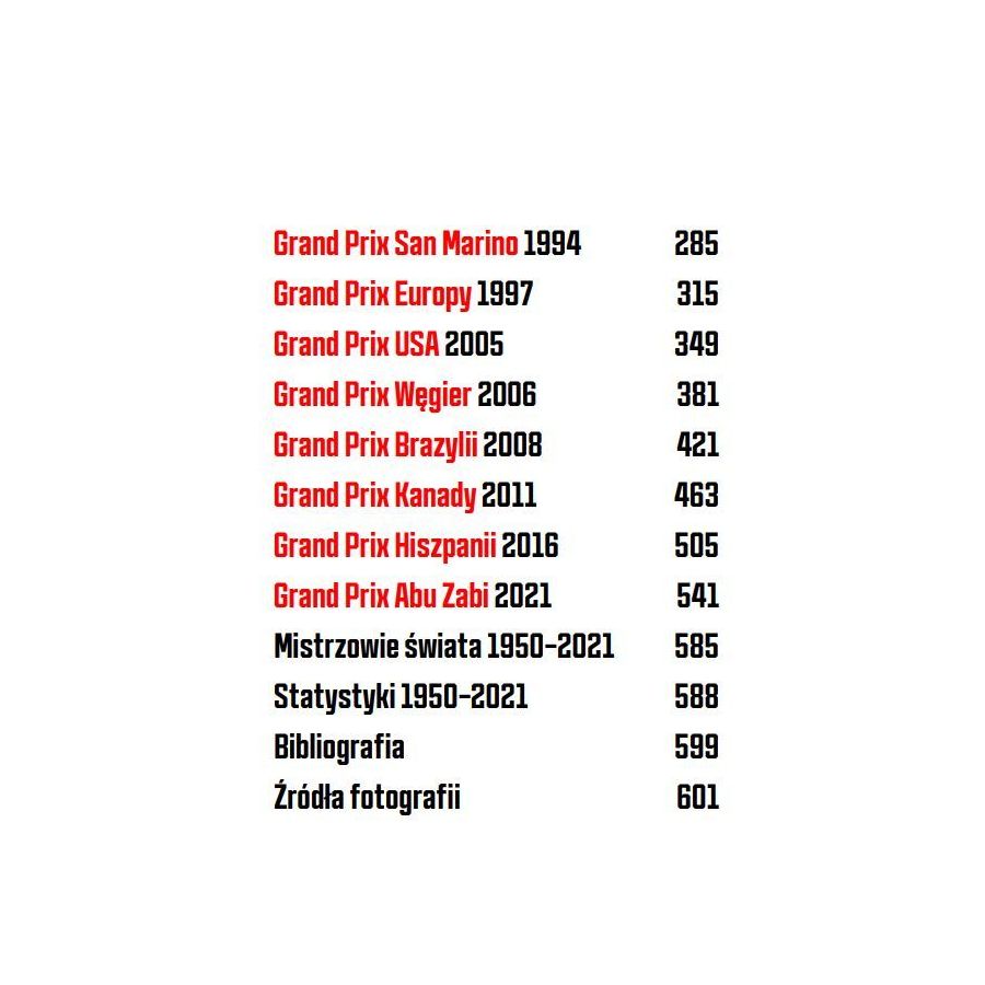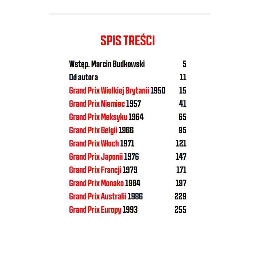 - książka przedstawia najciekawsze, najbardziej emocjonujące, decydujące, nietypowe i najważniejsze wyścigi w historii Formuły 1;