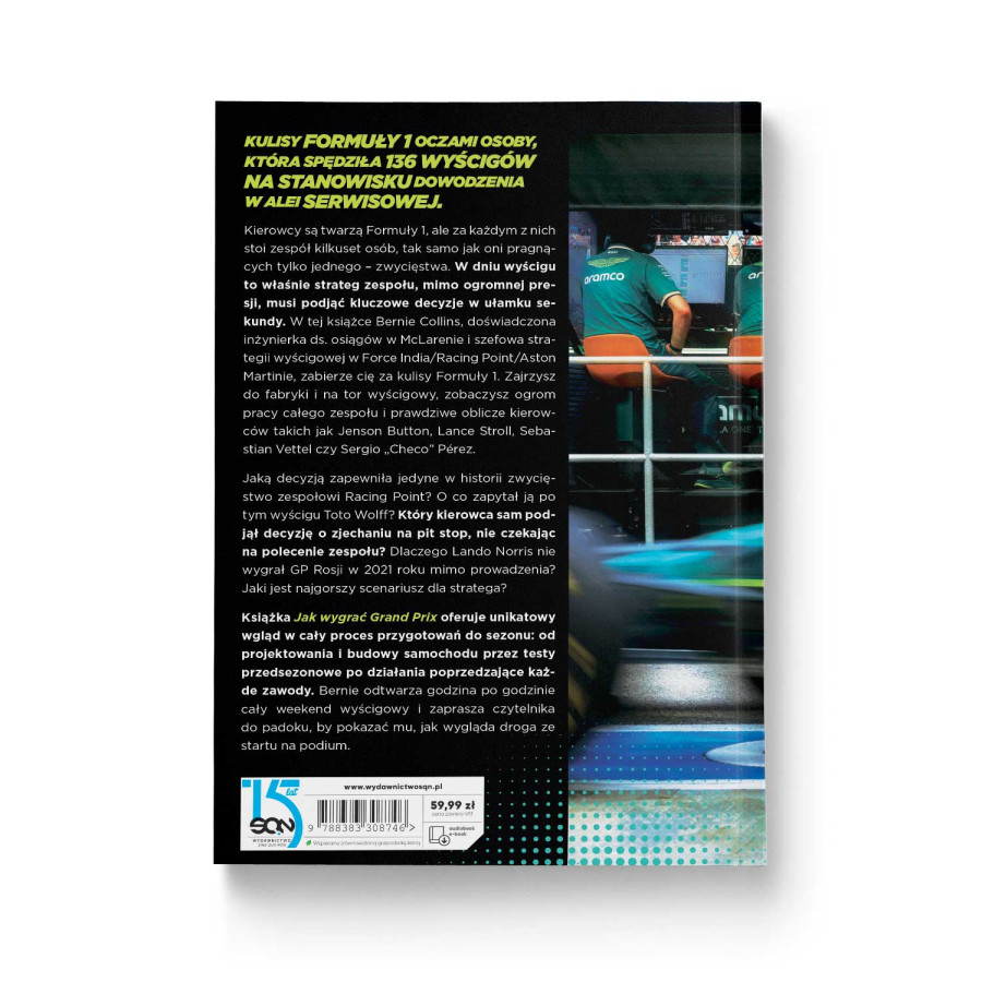 Kierowcy są twarzą Formuły 1, ale za każdym z nich stoi zespół kilkuset osób, tak samo jak oni pragnących tylko jednego – zwycięstwa. W dniu wyścigu to właśnie strateg zespołu, mimo ogromnej presji, musi podjąć kluczowe decyzje w ułamku sekundy. W tej książce Bernie Collins, doświadczona inżynierka ds. osiągów w McLarenie i szefowa strategii wyścigowej w Force India/Racing Point/Aston Martinie, zabierze cię za kulisy Formuły 1. Zajrzysz do fabryki i na tor wyścigowy, zobaczysz ogrom pracy całego zespołu i prawdziwe oblicze kierowców takich jak Jenson Button, Lance Stroll, Sebastian Vettel czy Sergio „Checo” Pérez.