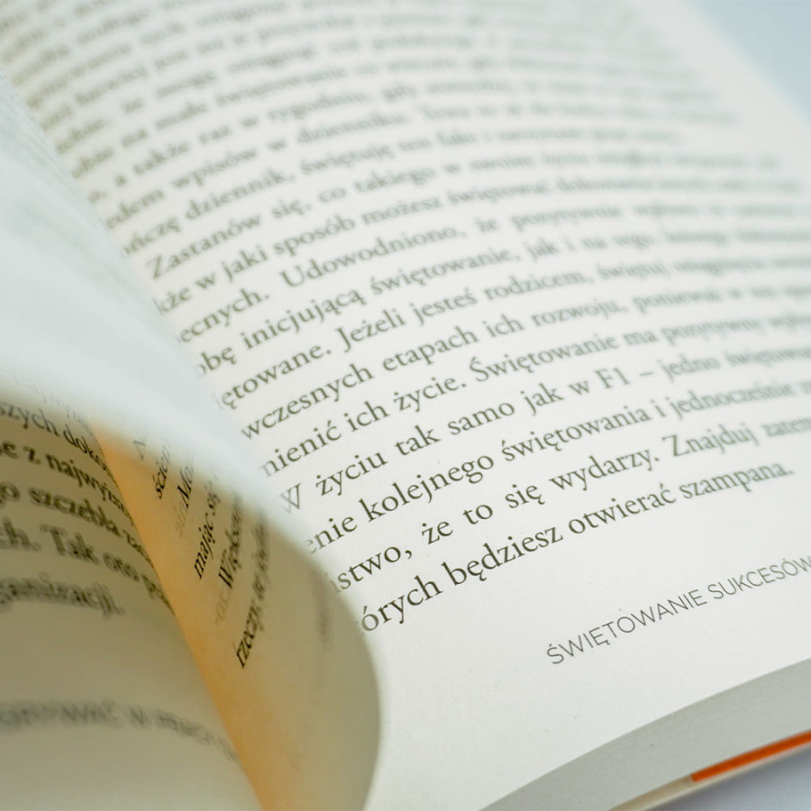 - Praktyczny system „wyścigowej” efektywności – książka oferuje gotowe narzędzia do wdrożenia w biznesie i życiu prywatnym: od zarządzania stresem, przez budowanie lojalnych zespołów, aż po skuteczne wyciąganie wniosków z błędów;