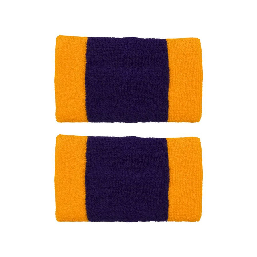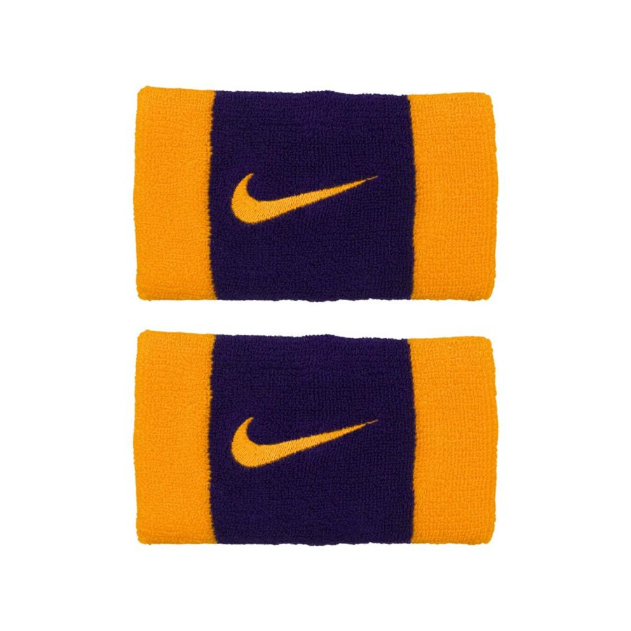 Frotki na nadgarstki Nike Swoosh Doublewide Wristbands fioletowo-żółte N0001586730