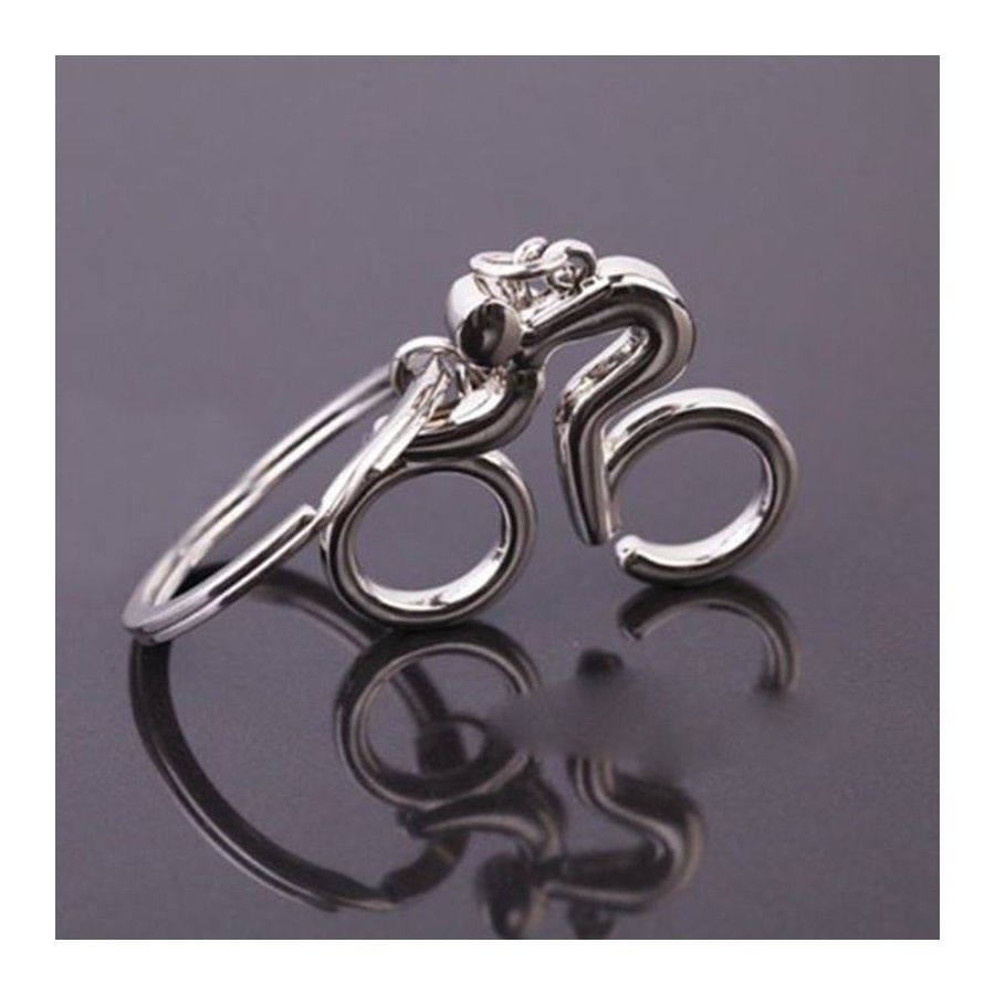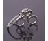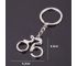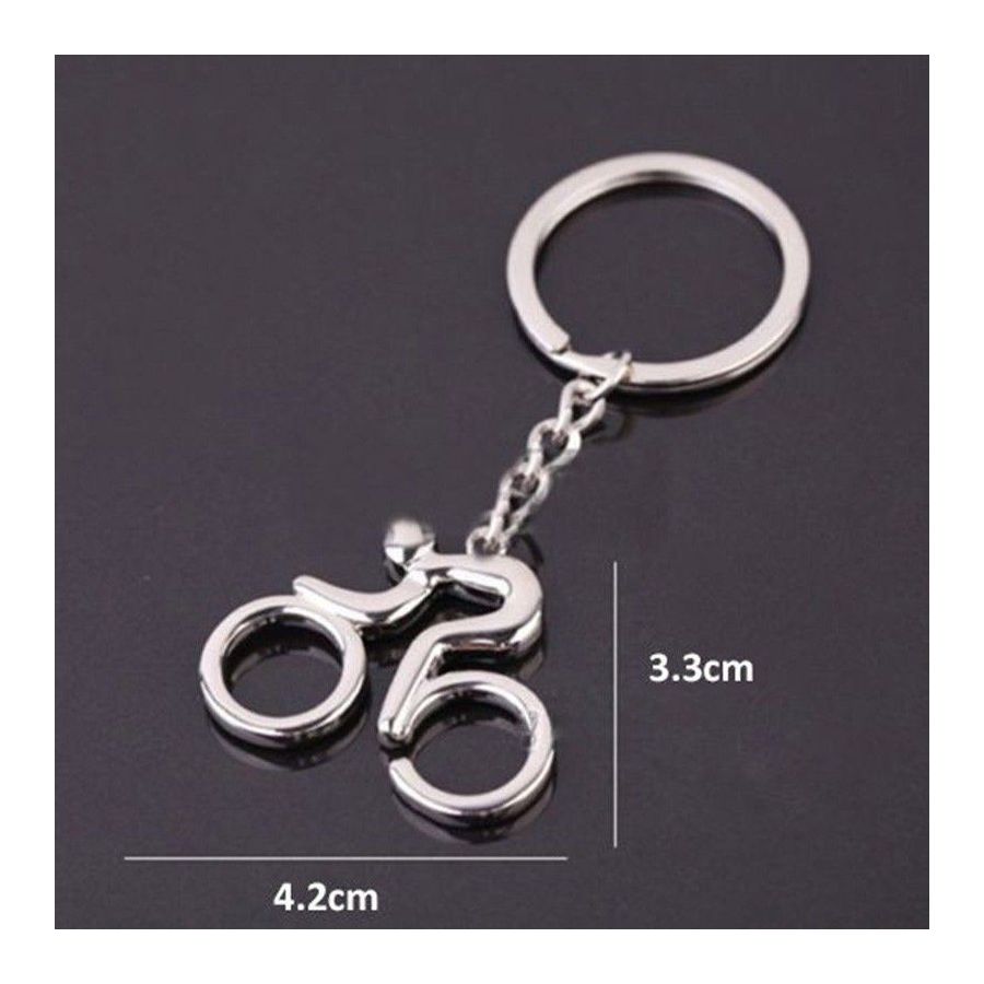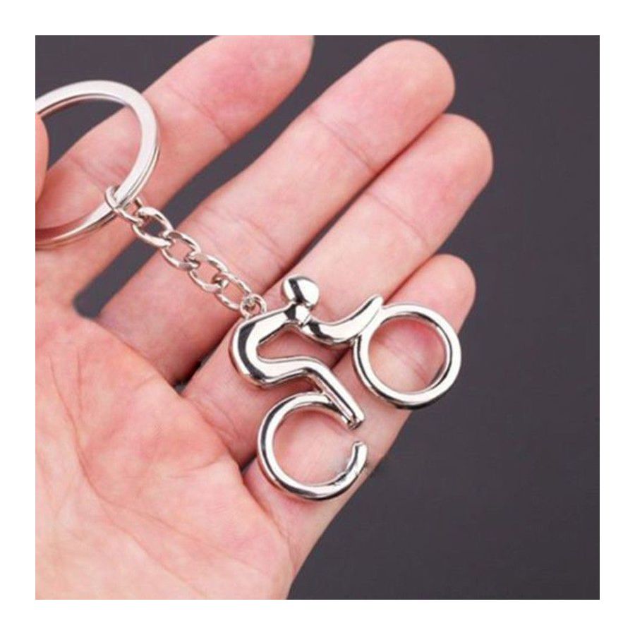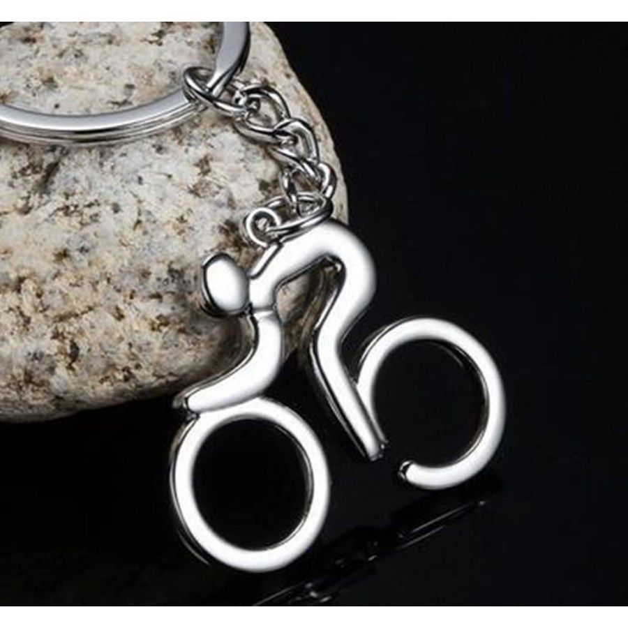 Metalowy brelok w kształcie rowerzysty z zawieszką.