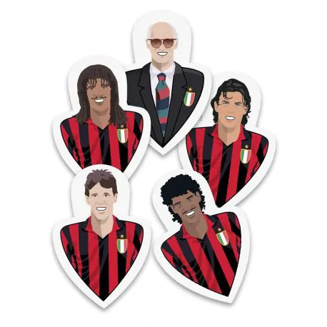 Specjalny gadżet dla wszystkich sympatyków AC Milan. Atrybut, który przyda się wszystkim, którzy lubią książki sportowe i "Rossonerich". Zestaw pięciu zakładek do książki z wizerunkami legend klubu: Arigo Sacchiego, Paolo Maldiniego, Marco van Bastena, Ruuda Gullita i Franka Rijkaarda z pewnością umilą czytanie!