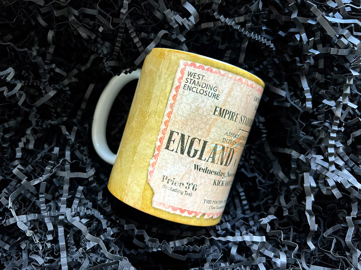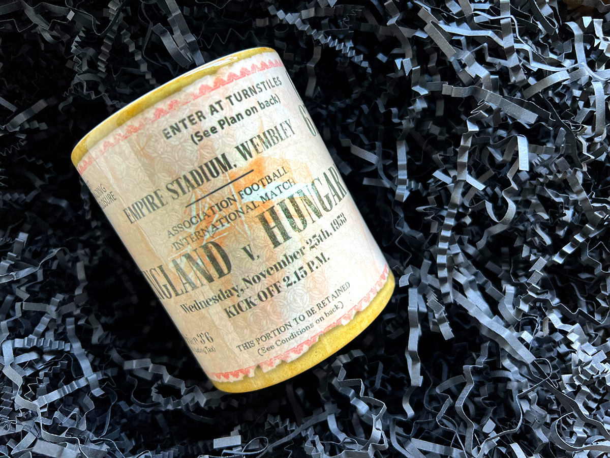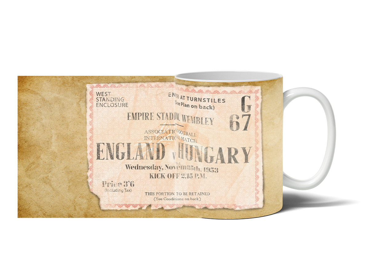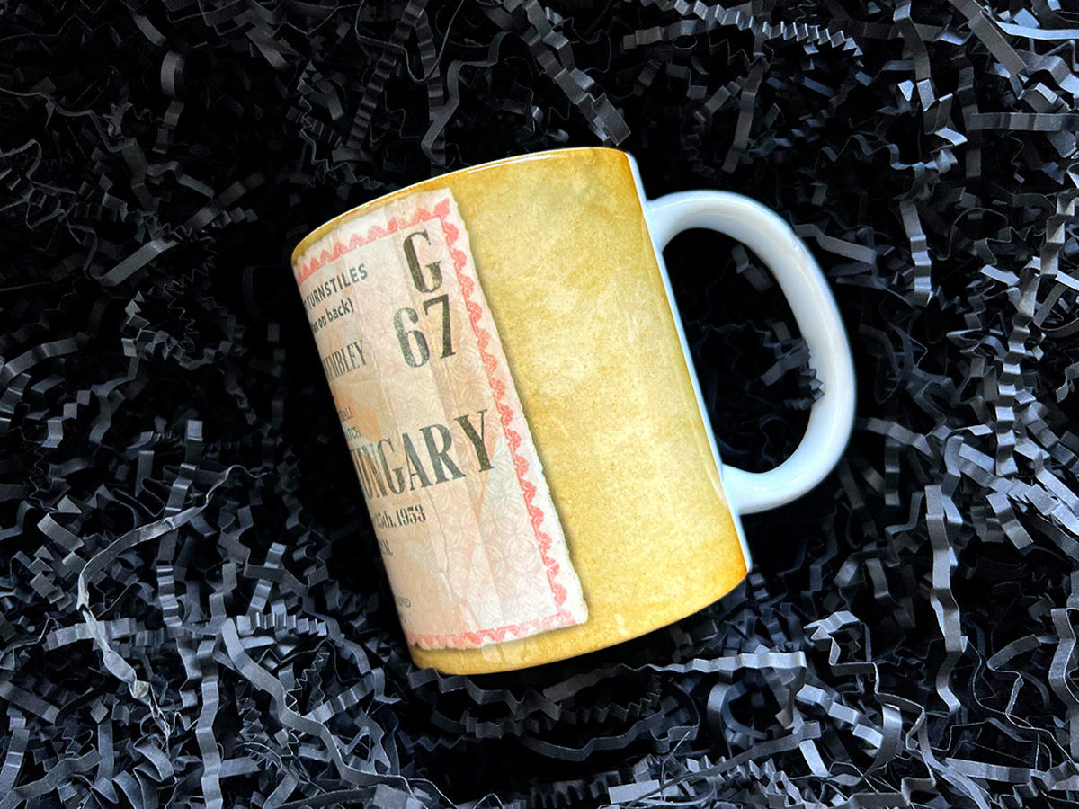Kubek wzorowany na biletem z historycznego meczu Węgry - Anglia z roku 1953 r.