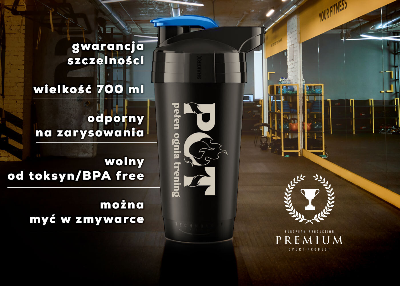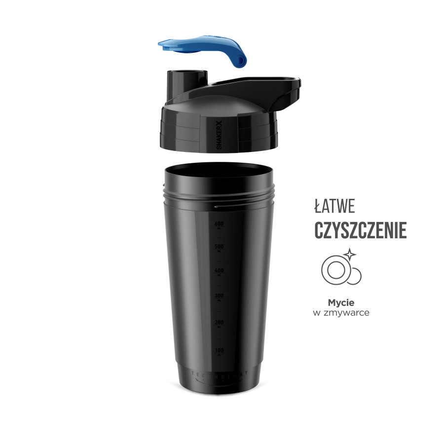 Wysokiej jakości shaker charakteryzuje się trwałością i bezpieczeństwem użytkowania, łatwo go też umyć, można to zrobić również w zmywarce. Shaker premium do odżywek i suplementów, zaprojektowany do ich miksowania.