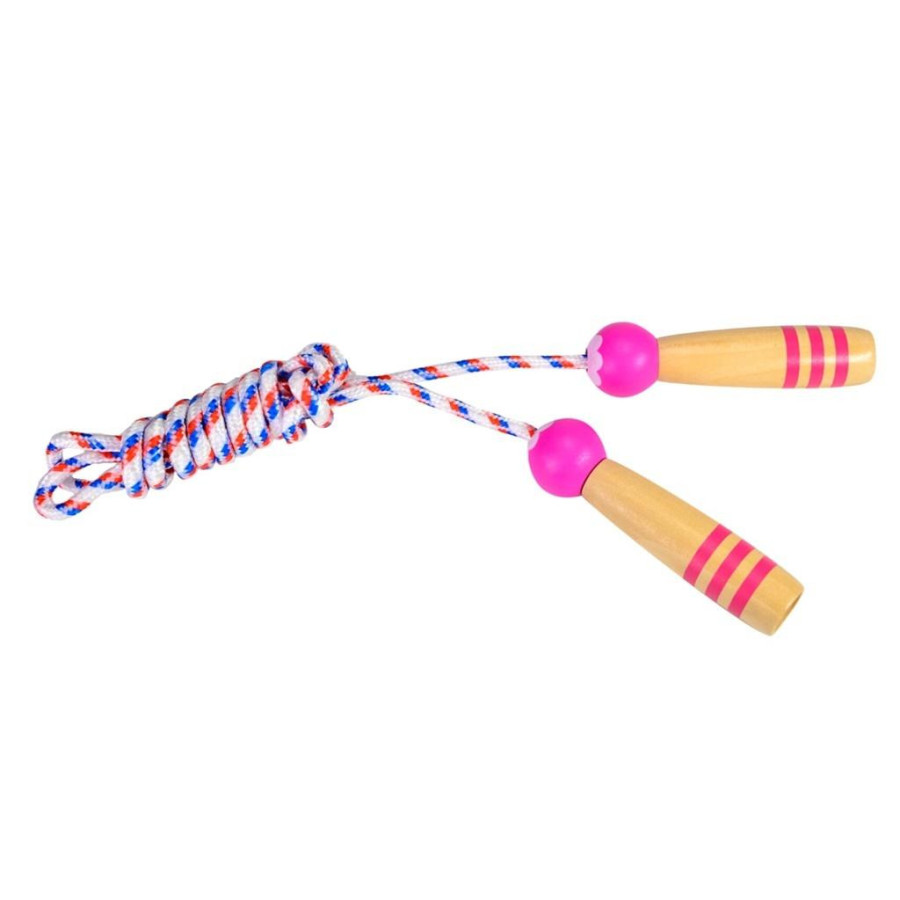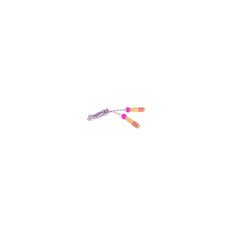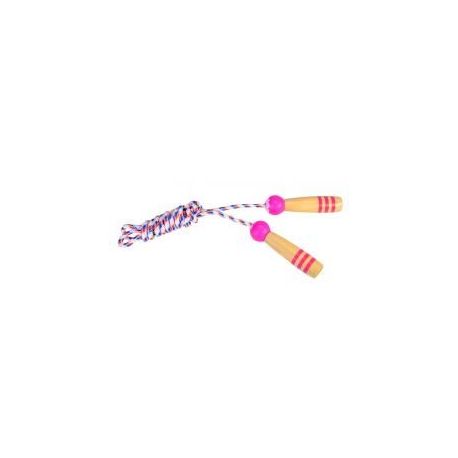 Kolorowa i wysokiej jakości skakanka zapewniająca sportowy i zabawny czas zabawy. Drewniane uchwyty.