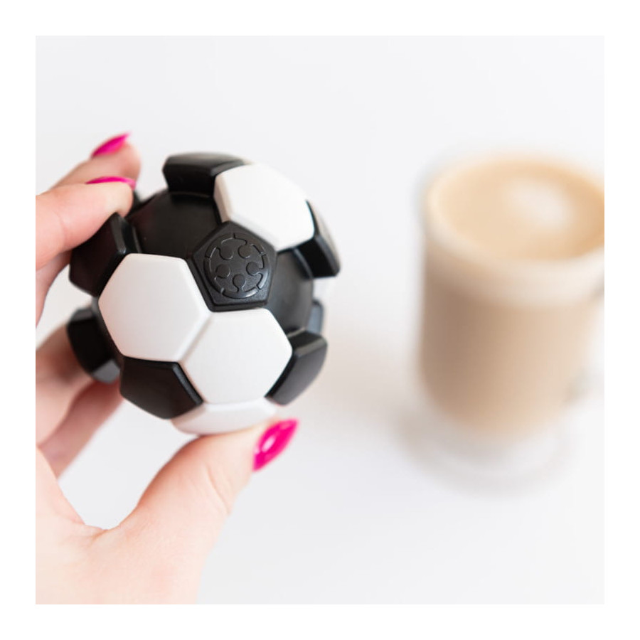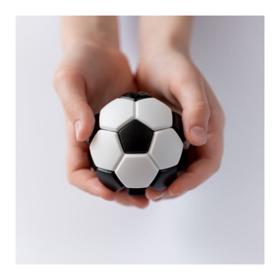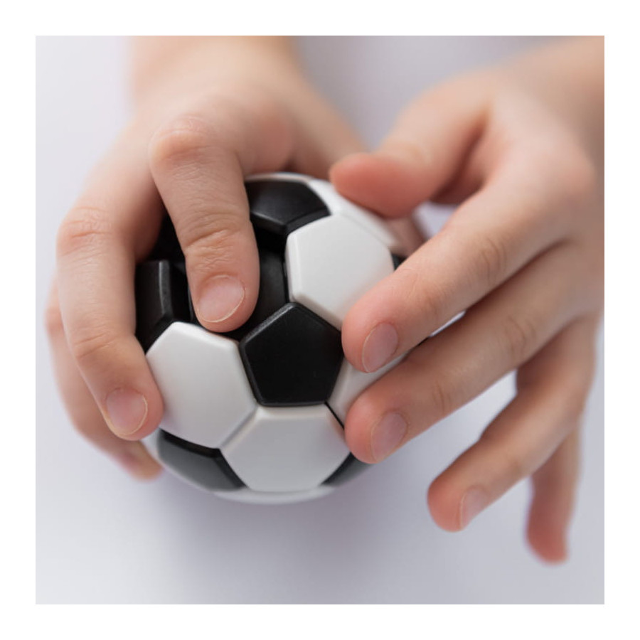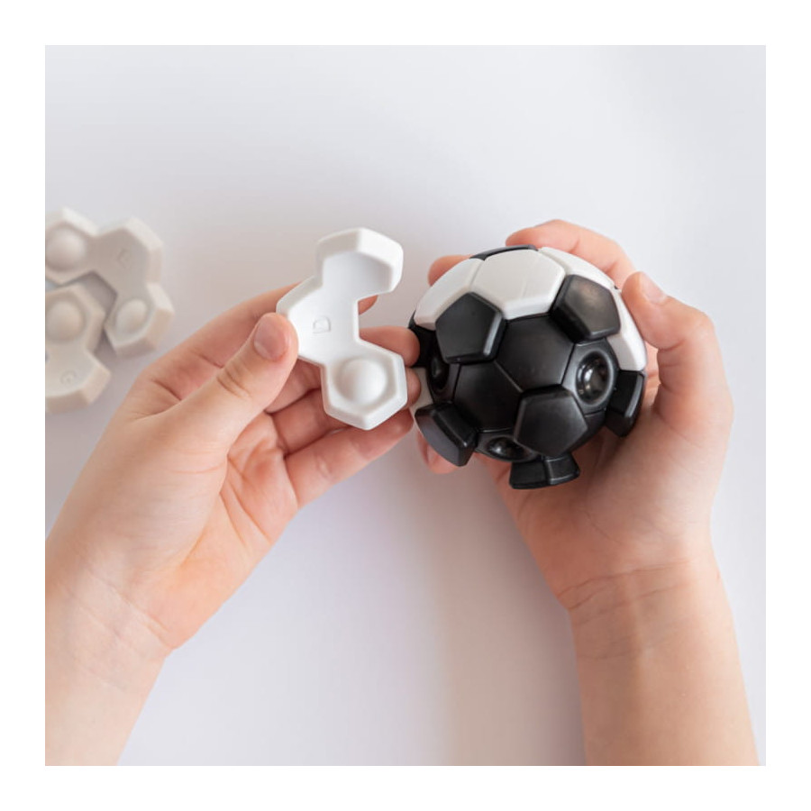 Dopasuj wszystkie 7 elementów do piłki bez poruszania najmniejszego elementu, który pełni funkcję startową. Pamiętaj, aby zakrywał on zawsze 1 miejsce z dołkiem oraz 1 miejsce bez dołka.