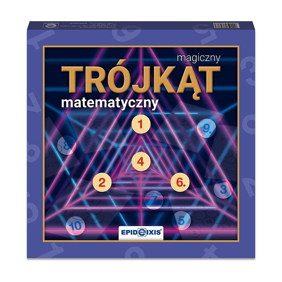 Magiczny trójkąt matematyczny to okrągła, drewniana podstawa z sześcioma wgłębieniami z jednej strony (mały trójkąt) i dziesięcioma z drugiej (duży trójkąt). Poza okrągłą podstawą w komplecie znajduje się też 10 małych drewnianych krążków dwustronnie oznaczonych liczbami od 1 do 10 (w kolorze czerwonym i niebieskim), jak również dwie książeczki z kartami pracy do Małego i Dużego Trójkąta (łącznie 200 zadań).