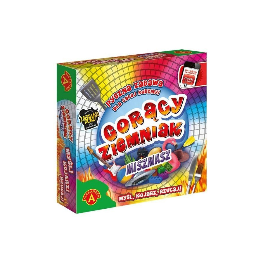 1 x plansza do gry,1 x gorący ziemniak,110 x karty pytań,4 x pionki,1 x bączek,1 x instrukcja.