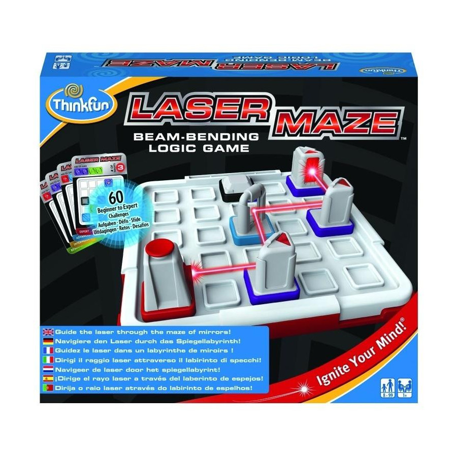 THINK FUN jest linią układanek i gier logicznych, które łączą świetną zabawę z ćwiczeniem szarych komórek oraz rozwijaniem kreatywności. Światła i lustra mogą sprawić, że wszystko wygląda magicznie, ale tak naprawdę to nauka i spora dawka potęgi umysłu to coś czego potrzeba by pokierować promieniem lasera w szeregu labiryntów ćwiczących umysł. Przygotuj się na satysfakcjonujący trening umysłu i wysiłek dla szarych komórek, gdy usiłujesz rozruszać swój umysł! Twój cel: Dla każdej karty z wyzwaniem, ułóż laser i klocki na planszy tak, aby podświetlić wskazaną liczbę celów. Zawartość i cechy gry: 60 kart z zadaniami i rozwiązaniami, tokeny do gry, plansza, baterie (dołączone do zestawu), wiek: 8-99 lat,