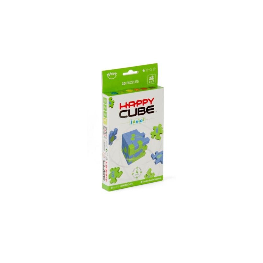 Piankowa zabawa, którą pokocha Twoje dziecko. Prezentowany produkt "Happy Cube Junior" to zestaw 6 kolorowych kostek z trwałej pianki, które możesz dowolnie ze sobą łączyć. Zwyczajniewypchnij elementy układanki z ramki i... buduj! Posługując się wyobraźnią przestrzenną i logiką spróbuj stworzyć kształt składający się z wszystkich elementów. Możesz też układać pojedyncze kostki. Jedynym ograniczeniem jest Twoja wyobraźnia. "Junior" to zestaw, który doskonale sprawdzi się u dzieci w wieku 3 do 7 lat.