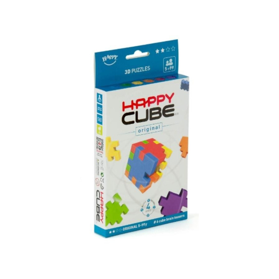 Piankowa zabawa, którą pokocha Twoje dziecko. Prezentowany produkt "Happy Cube Original" to zestaw 6 kolorowych kostek z trwałej pianki, które możesz dowolnie ze sobą łączyć. Zwyczajnie wypchnij elementy układanki z ramki i... buduj! Posługując się wyobraźnią przestrzenną i logiką spróbuj stworzyć kształt składający się z wszystkich elementów. Możesz też układać pojedyncze kostki. Jedynym ograniczeniem jest Twoja wyobraźnia. "Original" to zestaw, który doskonale sprawdzi się u dzieci w wieku powyżej 5 lat.