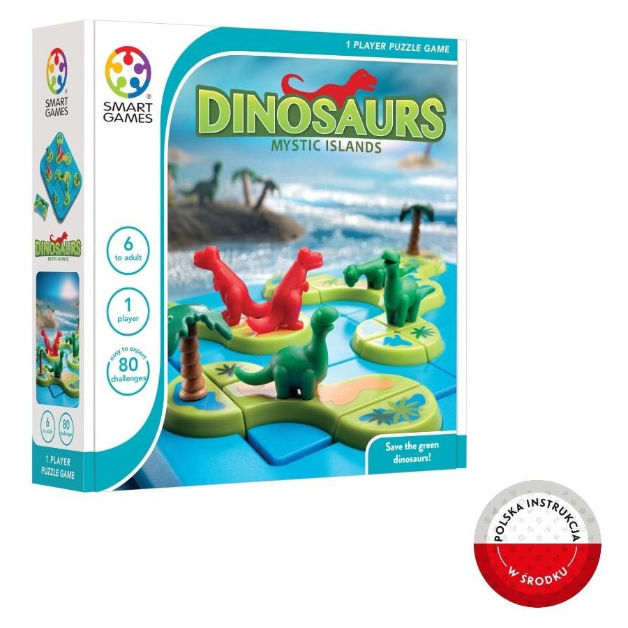 ,,Dinosaurs Mystic Island" to magnetyczna gra logiczna, w której gracz stara się umieścić roślinożerne i mięsożerne dinozaury na oddzielnych wyspach.