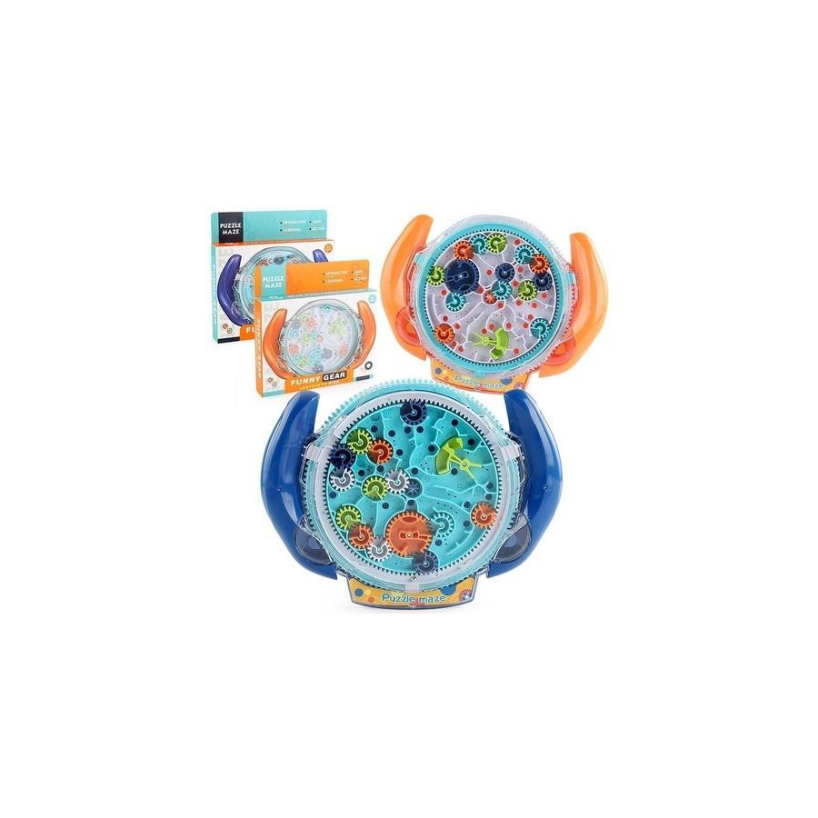 Gra logiczna zręcznościowa dla dzieci, poprawiająca koordynację oraz refleks. Labirynt posiada wytoczoną ścieżkę z numerkami, którą trzeba podążać aby dotrzeć do mety. Plansza gry posiada obrotowe uchwyty.