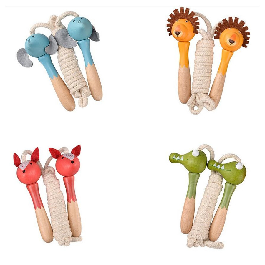 Każda skakanka ma rękojeść wykonaną z lakierowanego drewna w kształcie zwierzątka oraz biały sznurek.