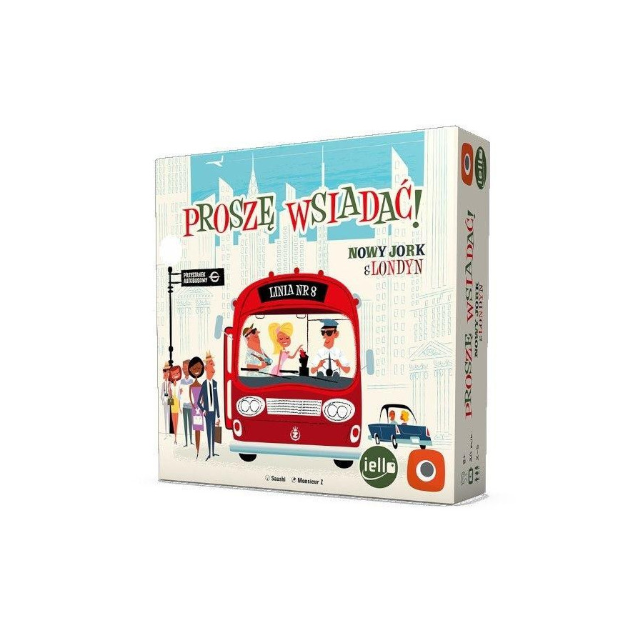 Proszę wsiadać: Nowy Jork i Londyn to szybka, familijna gra planszowa, której autorem jest uznany japoński twórca Saashi. Żadne miasto nie obejdzie się bez sprawnej komunikacji miejskiej, zwłaszcza takie metropolie jak Londyn i Nowy Jork. W grze staniecie się projektantami sieci autobusowych, a wszystko to dzięki świeżemu spojrzeniu na mechanikę roll and write. Proszę wsiadać łączy w sobie proste zasady ze strategicznym potencjałem, dzięki czemu w grze odnajdą się zarówno początkujący, jak i zaawansowani planszówkowicze. W każdej z szesnastu rund będziecie dokładać na planszę znaczniki Trasy i zabierać ze sobą kolejnych turystów, studentów i zwykłych mieszkańców. Zwycięży ten z was, któremu uda się przewieść największą liczbę pasażerów, dostarczyć ich na miejsce, a przy okazji zwiedzić najwięcej atrakcji. Strzeżcie się korków i korzystajcie z zielonych świateł. Twórzcie najbardziej szalone trasy, lecz pod żadnym pozorem nie róbcie pętli, bo odpadniecie z gry!