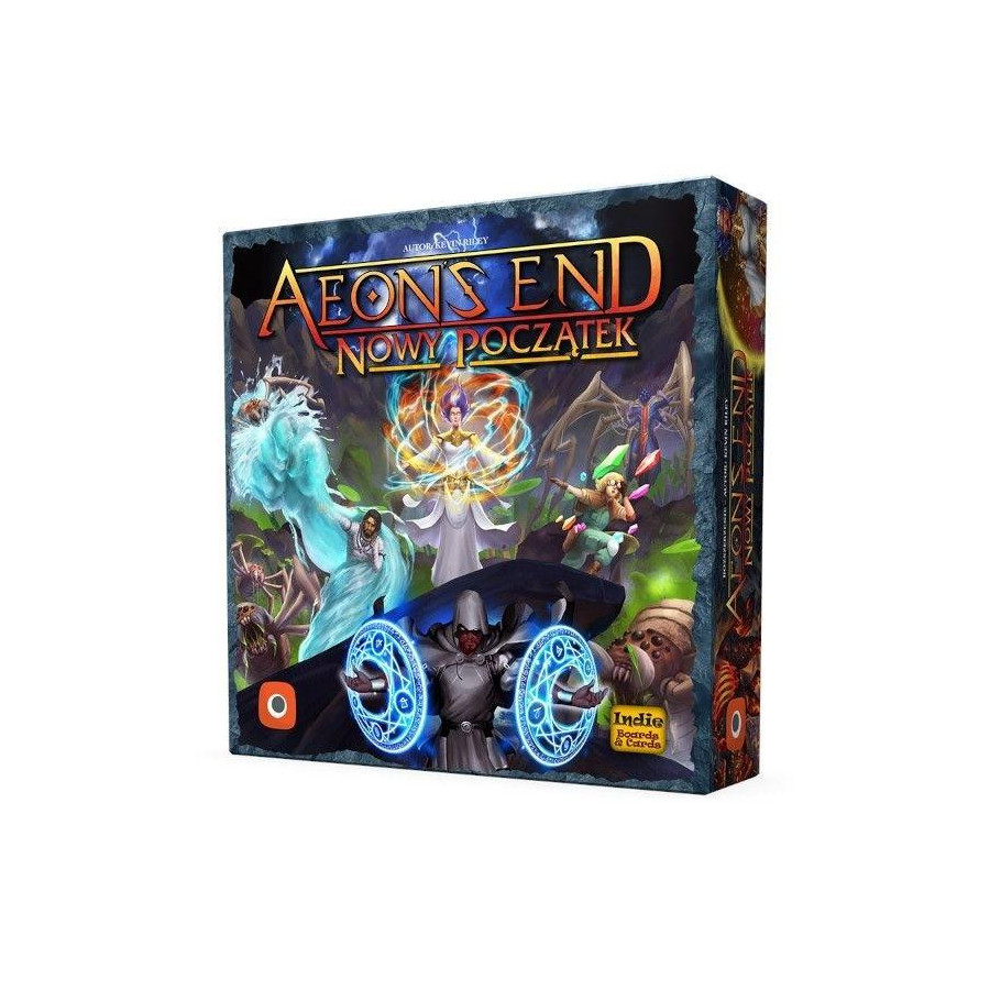 Aeons End: Nowy Początek to prawowity następca i kontynuacja Aeons End, kultowej, kooperacyjnej karcianki z wiodącą mechaniką budowania talii, w której karty nigdy nie są tasowane. Gravehold Minione przepadło bezpowrotnie, runęło pod naporem Wrzechostrza, najpotężniejszego Bezimiennego, jakiego widział świat. Lecz pośród popiołów i beznadziei lśni promyk światła. Nowe Gravehold rodzi się na gruzach swej poprzedniczki, niosąc nadzieję na przetrwanie jego mieszkańców. Wy, Magowie Bram, stajecie w jego obronie. Tym razem nie będziecie tylko czekać, lecz sami ruszycie do ataku. Zapuścicie się w nieprzeniknione odstępy, by odkryć pochodzenie Bezimiennych i raz na zawsze położyć kres ich istnieniu.