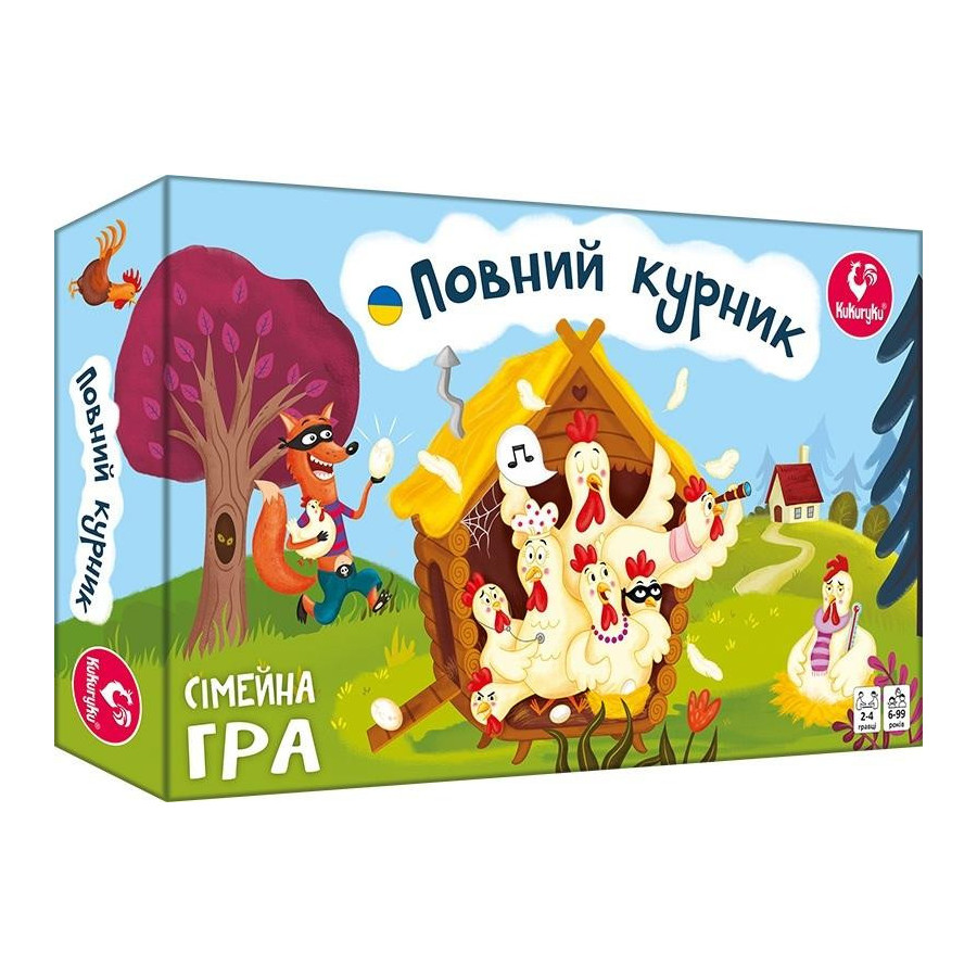Gra "Pełny kurnik" w ukraińskiej wersji językowej. Gra zapewni fantastyczną zabawę dla całej rodziny. Gracze zbierają jaja, hodują kurczaki i kury. Jednak muszą uważać i bronić je przed ptasią grypą i przebiegłym lisem! Ten z hodowców, który jako pierwszy ułoży na grzędach w swoim kurniku dziewięć dorosłych kur, zwycięża!