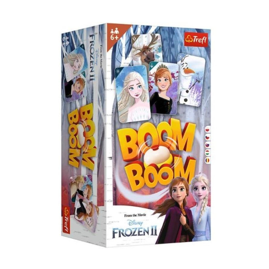 W nowej odsłonie gry Boom Boom gracze starają się zebrać identyczne karty z ulubionymi bohaterami z filmu Disney Kraina Lodu II. Wszyscy gracze w tym samym czasie wymieniają karty z ręki z kartami znajdującymi się na planszy. Po zebraniu zestawu 4 takich samych kart gracz uderza w dzwonek, sygnalizując innym wykonanie zadania. Gracze mogą polować na karty przeciwników kto okaże się najszybszy? Gracz, który jako pierwszy zbierze odpowiednie stosy takich samych kart, zostaje zwycięzcą!