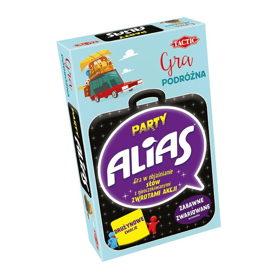 Wersja podróżna słynnej gry imprezowej Party Alias od Tactic to doskonała rozrywka na każdą okazję, gdziekolwiek jesteś. W tej grze gracze objaśniają hasła inaczej mówiąc, ale zmieniają sposób tłumaczenia za każdym razem, gdy pionek odwiedzi pole specjalne.
