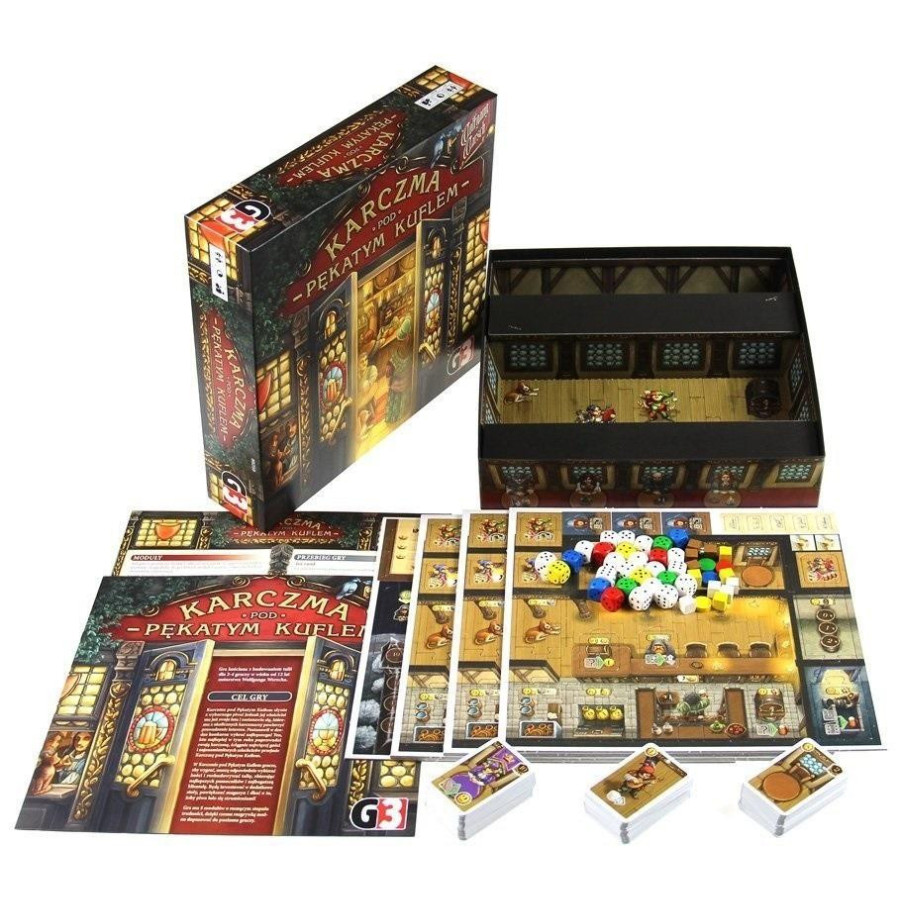"Karczma pod Pękatym Kuflem" to gra kościana z budowaniem talii dla 2 do 4 osób w wieku od 12 lat, stworzona przez Wolfganga Warscha autora bestsellerowej gry rodzinnej Szarlatani z Pasikurowic. Zaproś rodzinę oraz znajomych i wspólnie zadbajcie aby na stołach nigdy nie zabrakło jadła, a piwo lało się strumieniami!