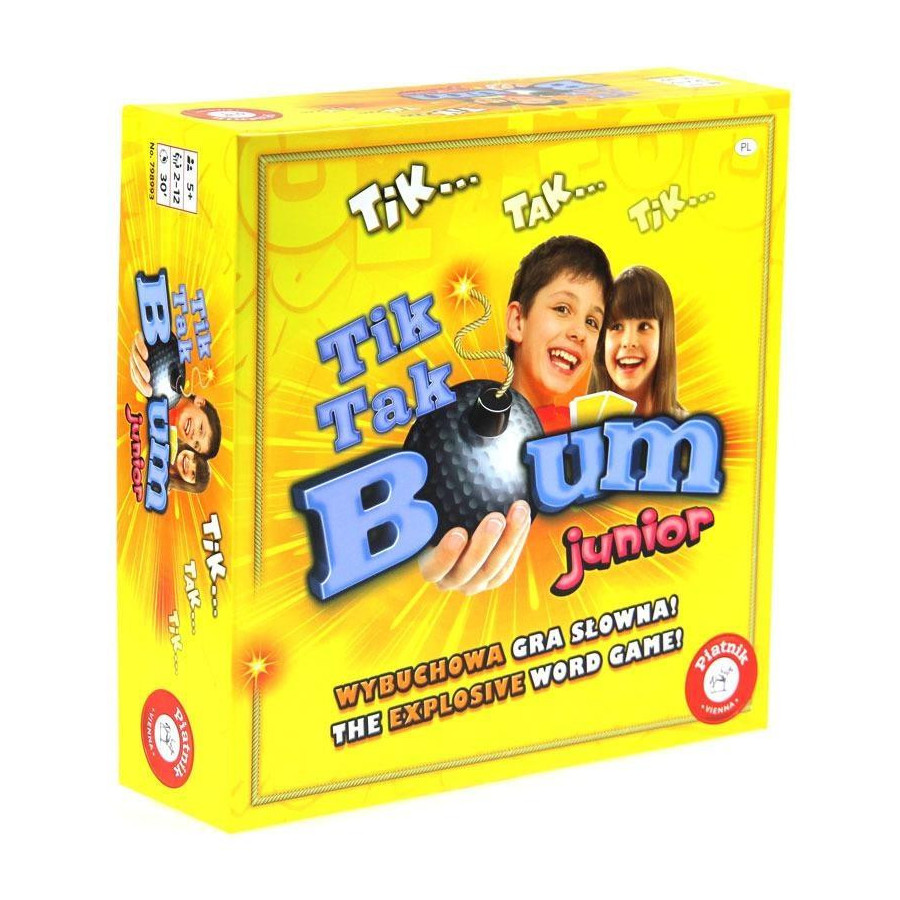 Kultowa, wielokrotnie nagradzana gra słowna Tik Tak Bum teraz w wersji dla młodszych graczy (od 5 lat dla 2-12 graczy). Szybka, zabawna i edukacyjna. Świetnie ćwiczy kreatywność, spontaniczność i słownictwo.