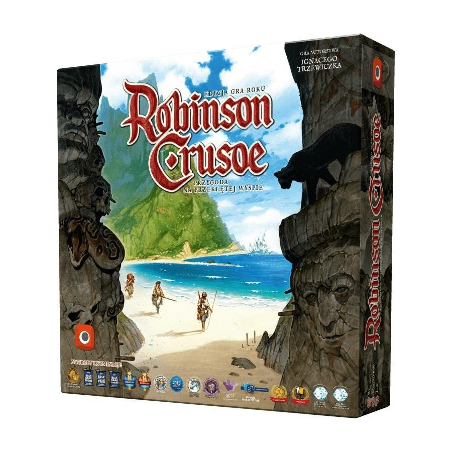 Robinson Crusoe: Adventure on the Cursed Island w edycji Gra Roku, to nowa wielka gra Portalu. Tym razem porywamy was na bezludną wyspę i rzucamy w wir niezwyklych przygód, które przytrafią się grupie rozbitków! Będziecie budować szalas, palisadę, bronie, będziecie tworzyć przedmioty, będziecie starać się robić co w waszej mocy, by by przetrwać. Będziecie szukać pożywienia, walczyć z bestiami, chronić się przed złą pogodą Wciel się w rolę jednego z czterech członków załogi statku (kucharza, stolarza, odkrywcy lub żołnierza) i staw oko przygodzie. Użyj zdolności, by pomóc kompanom, przedyskutuj plan działania i wciel go w życie! Szukajcie skarbów. Odkrywajcie tajemnice wyspy. Realizujcie cele jednego z sześciu pasjonujących scenariuszy. Zacznijcie od budowy i podpalenia stosu drewna, by wezwać pomoc, a następnie przejdźcie do kolejnych przygód. Zostańcie egzorcystami na przeklętej wyspie. Zostańcie łowcami skarbów na wyspie wulkanów. Wcielcie się w rolę ratowników i uratujcie piękną damę, która utknęła na samotnej skale daleko od brzegu Daj się porwać przygodzie! Robinson Crusoe: Adventure on the Cursed Island to wspaniała gra kooperacyjna, która ożywia młodzieńcze marzenia, rozpala wspomnienia z lektury powieści Juliusza Verne'a czy Daniela Defoe. Proste reguły wspaniale komponują się z pasjonującym tematem i porywają was ku wspaniałej przygodzie. Przygotuj się na kolejne wspaniałe pudło ze stajni Portalu! Zawartość pudełka: 55 kart o wymiarach 44x68mm, 220 kart o wymiarach 58x88mm, 30 naklejek, 12 kości, 11 kafelków wyspy, 134 żetony, min. 81 drewnianych znaczników, 20 pionków, na 4 kartach znajduje się 7 scenariuszy, 4 dwustronne karty postaci, znacznik pierwszego gracza, plansza, instrukcja. Liczba graczy: 1-4 osoby Czas gry: 60-90 minut .