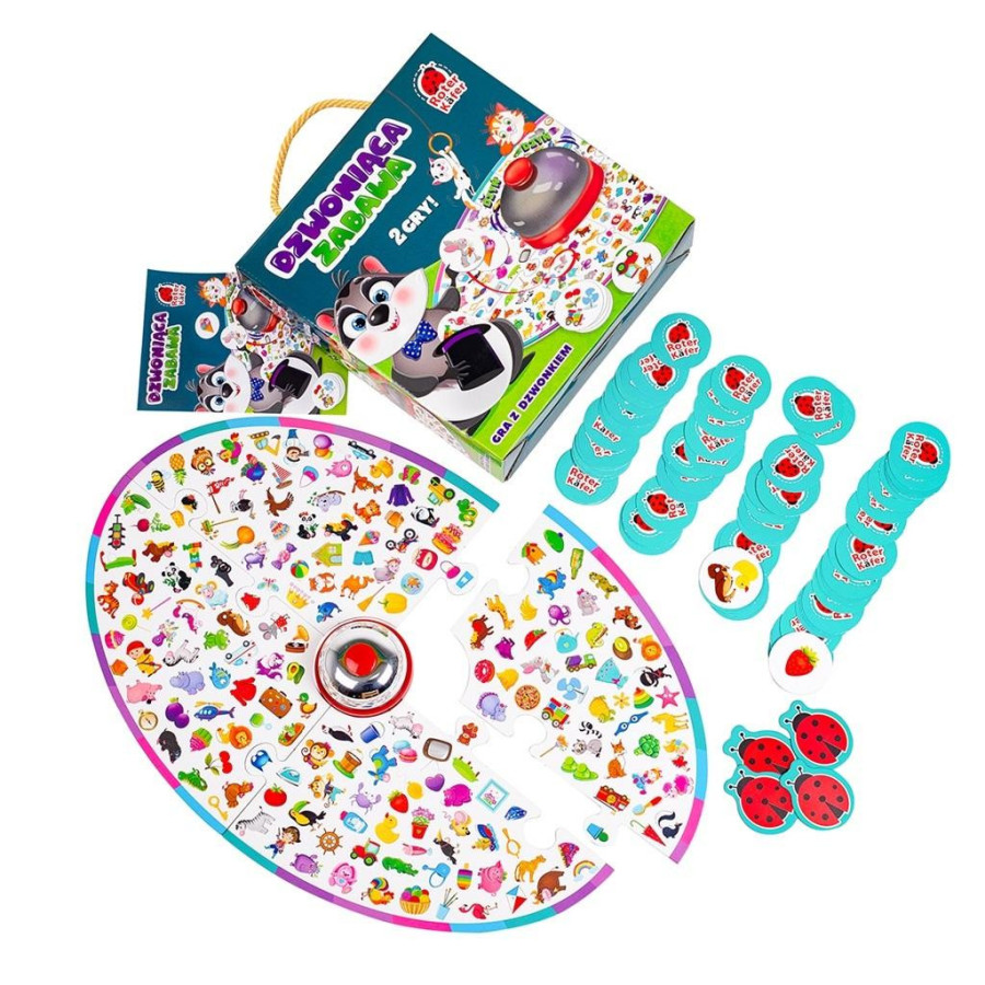 Ciekawa i dźwięczna gra dla rodziny i przyjaciół! Na wyścigi szukajcie na planszy do gry zbieżności w fiszkach i naciskajcie dzwonek!