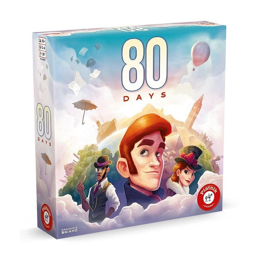 Podobnie jak w oryginalnej powieści, brytyjska stolica Londyn jest punktem początkowym i końcowym ekscytującej podróży w "80 Days". Śladami angielskiego dżentelmena Phileasa Fogga możesz w zabawny sposób podróżować z miasta do miasta statkiem, pociągiem lub balonem. Niestety koszty podróży stale rosną, dlatego darmowe przejazdy są bardzo poszukiwane w celu zaoszczędzenia cennych monet. Burzliwa pogoda, zepsute tory, słaba widoczność czy kontrole celne nieustannie stawiają nowe wyzwania przed rundą dookoła świata. Pomocny bagaż można kupić w butiku lub na bazarze - lub na czarnym rynku. Oczywiście jeśli masz wystarczająco dużo pieniędzy, ponieważ - podobnie jak koszty podróży - ceny stale rosną we wszystkich obszarach rynku. Równie ważne jest dobre spakowanie się i oszczędność miejsca, ponieważ każda walizka na spersonalizowanych tablicach z postaciami ma tylko określoną pojemność. Po drodze czekają na Ciebie liczne przygody, które musisz opanować, aby rozszerzyć swój osobisty dziennik podróży i zebrać cenne punkty zwycięstwa do końcowej punktacji. Szybka podróż dookoła świata trwa około 50 minut, dopóki nie będziesz mógł wejść do Londynu po ukończeniu co najmniej czterech przygód. Dwustronna plansza do gry zapewnia mnóstwo różnorodności z wciąż nowymi wyzwaniami, nawet podczas wielokrotnego grania. Możliwa jest rozgrywka w prostszym wariancie, natomiast szczególnie doświadczeni podróżnicy mogą skorzystać z modułu "Asystenci" do aktywnego wsparcia i dodatkowych opcji działania.