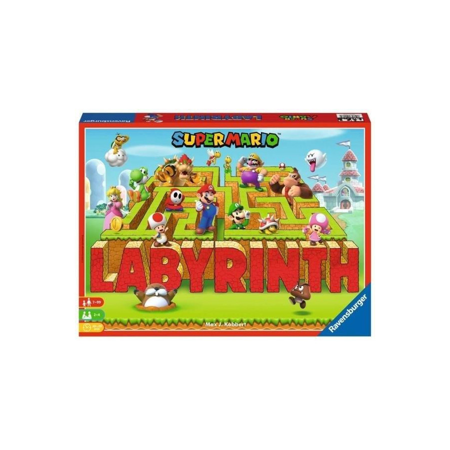 Klasyczna gra Labyrinth w nowym wydaniu - na licencji Super Mario! Szaleńcza zabawa dla całej rodziny. Należy przemierzyć długie korytarze, odkryć wspaniałe skarby i wygrać. Po wyłożeniu karty z labiryntem wszyscy gracze gnają po krętych, zawiłych korytarzach. Przesuwając karty ze ścieżkami, szukamy drogi do upragnionego skarbu. Ale uwaga, jeden ruch przeciwnika może zupełnie zmienić układ tunelu! "Mamma mia!Gdzie się podział Mario? Zarówno on, jak i Luigi, Yoshi, Księżniczka Peach, Donkey Kong oraz pozostali bohaterowie Super Mario ukryli się gdzieś w szalonym labiryncie. Przesuwaj kafle labiryntu, aby dostać się do bohaterów z kart! Czy uda ci się odnaleźć ich wszystkich? Labirynth: Ekscytująca gra, w której to ty musisz odkryć prawidłową drogę!