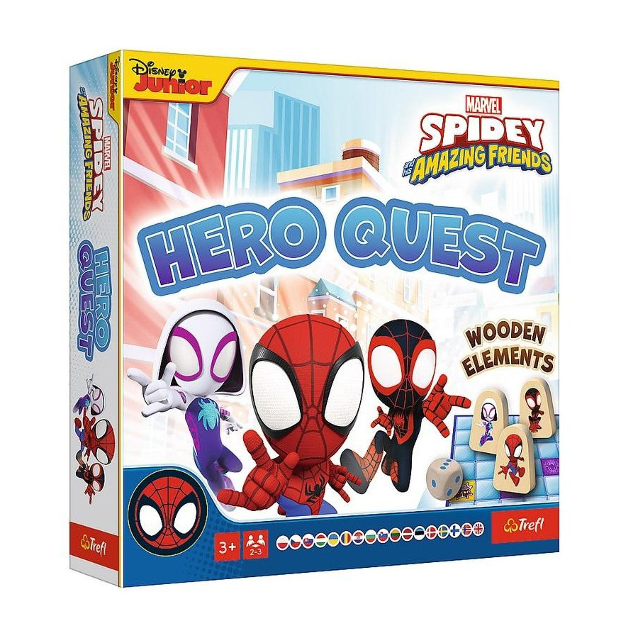 Razem z bohaterami bajki Spidey i super-kumple ruszycie na poszukiwania pozostałych superbohaterów. Dowiedzcie się, kto z Was jest najszybszy i jako pierwszy odnajdzie na planszy swoich superbohaterów. Spidey and His Amazing Friends: Hero Quest to gra dla najmłodszych dzieci zawierająca drewniane elementy.