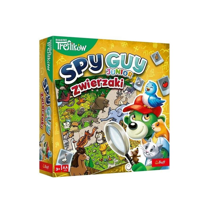 Spy Guy Junior Zwierzaki to kooperacyjna gra, w której wcielacie się w rolę młodego detektywa i próbujecie schwytać złoczyńcę, nim ten złapie wszystkie zwierzaki świata i zamknie je w swoim prywatnym zoo. Ćwiczcie spostrzegawczość, umiejętność skupienia uwagi i współpracy, poszukując poszlak na barwnej, rysunkowej ponadmetrowej planszy.
