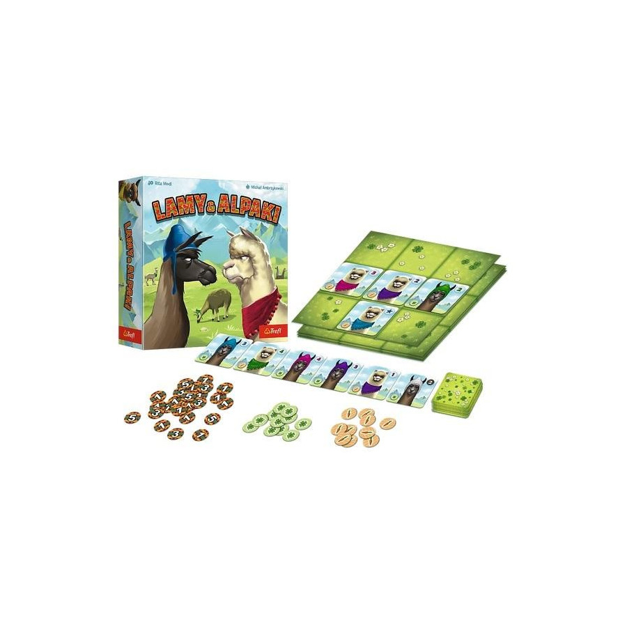 Witajcie na górskich pastwiskach zamieszkanych przez lamy i alpaki! W grze należy rozmieścić na swojej planszetce kolejne karty ze zwierzętami, tak aby obok siebie znalazły się 3 zwierzaki, które łączy wspólna cecha rodzaj zwierzęcia, cyfra na karcie, lub kolor akcesoriów. Szukaj podobieństw! Im więcej wspólnych cech, tym więcej punktów, które przybliżą Cię do wygranej.