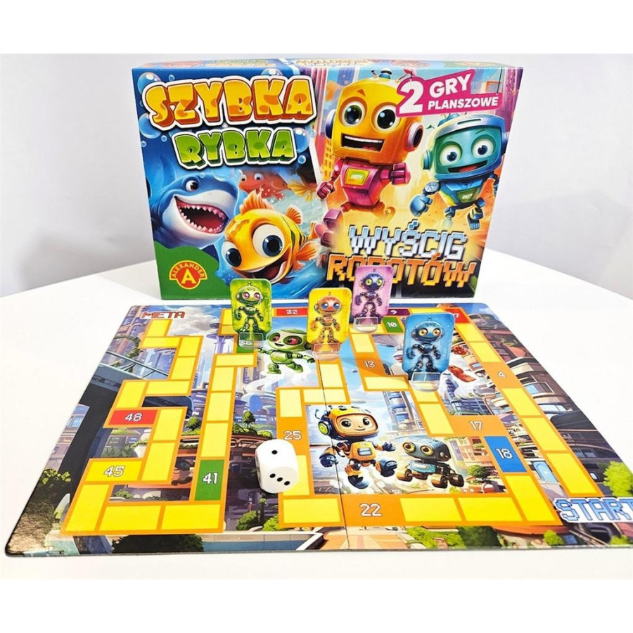 Dwie proste planszówki wprowadzające najmłodszych w świat gier. Klasyka w nowym wydaniu atrakcyjna nowoczesna grafika, kolorowe tekturowe pionki.
