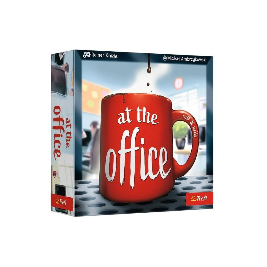 At the Office to gra typu roll&write, w której gracze ścigają się o miano najlepszego szefa! Rzucasz kolorowymi kośćmi, a następnie przypisujesz wybrany wynik jednemu z pracowników w biurowej piramidzie. Kości przypisane do zwierzchników powinny wskazywać wyższy wynik niż te przypisane do podwładnych. Aby zebrać jak najwięcej punktów zwracaj też uwagę na możliwe do zdobycia bonusy.