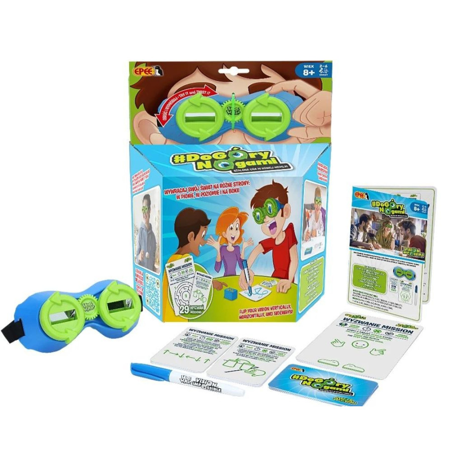 Świat nigdy już nie będzie taki sam! Do Góry Nogami wciąga i angażuje graczy do tworzenia coraz to nowych zwariowanych zadań i wyzwań. Specjalnie zaprojektowane okulary sprawiają, że wykonanie nawet najprostszego zadania staje się nie lada wyzwaniem.