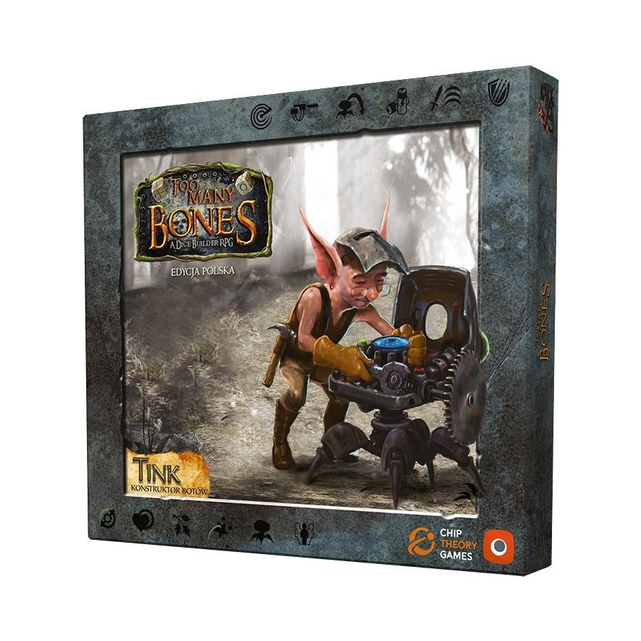 W zestawie znajduje się 21 specjalnych kostek, plastikowy szton - żeton Gearlocka i neoprenowa mata postaci.