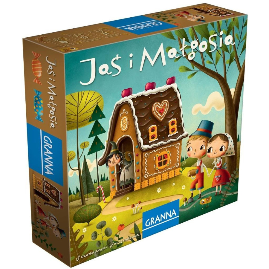 Jaś i Małgosia to wesoła kooperacyjna gra planszowa dla całej rodziny,w której wspólnie staracie się pomóc tytułowym postaciom zdobyć pięć smakowitych pierniczków, jednocześnie nie dając złapać się Babie Jadze. Aby osiągnąć ten cel, musicie ze sobą współpracować, wykazać się sprytem i logicznym myśleniem. Zgarnijcie jak najszybciej pierniczki i ucieknijcie Babie Jadze!