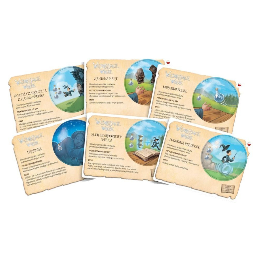 Wędrujące wieże: Zestaw mini dodatków #2 to pakiet 6 nowych czarów, z których możecie korzystać we wszystkich wariantach zabawy. Każdy z nich oferuje specjalny efekt, który pozwoli Wam jeszcze skuteczniej walczyć o zdobycie dyplomu szkoły magii i uczyni rywalizację jeszcze bardziej zaciętą.