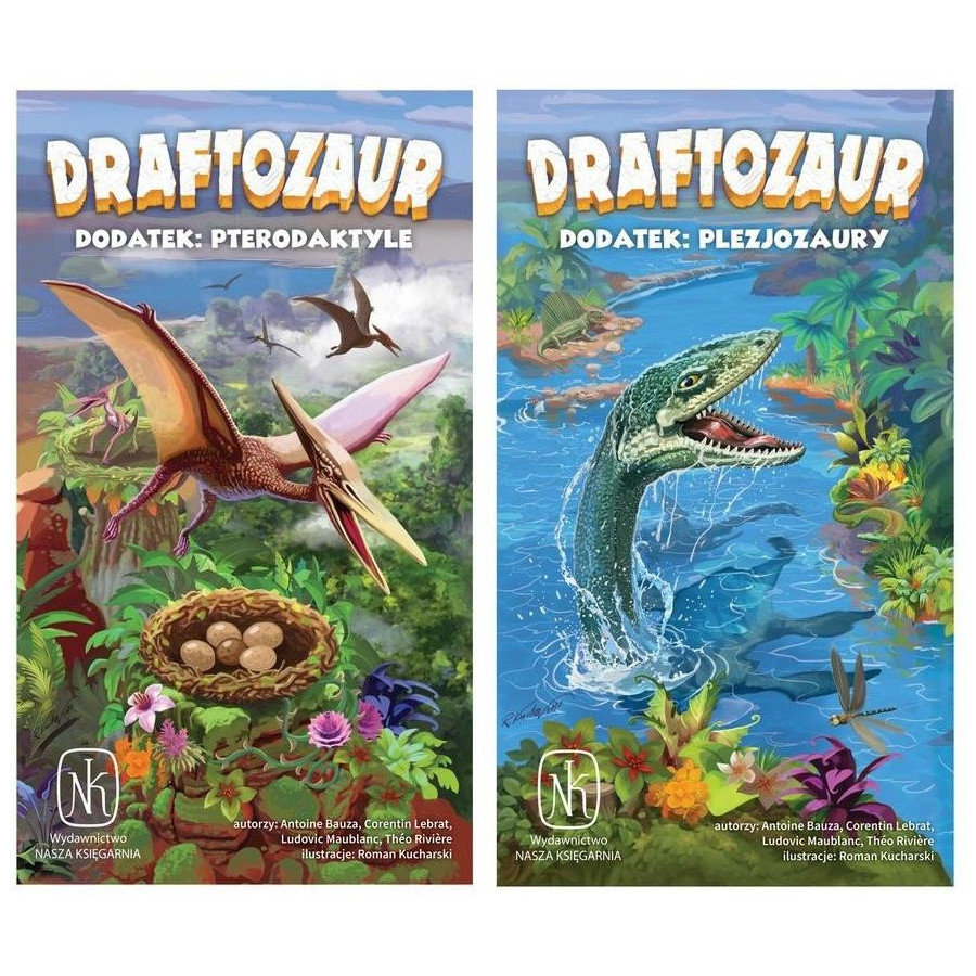 20 nowych pionków dinozaurów: latające pterodaktyle i pływające plezjozaury.10 nowych dwustronnych plansz każda jest inna.Nowe sposoby zdobywania punktów.Oba dodatki można ze sobą łączyć.
