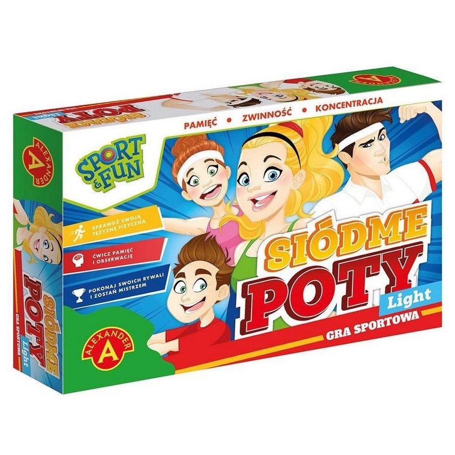 "Siódme Poty" to energiczna gra, w której poruszmy się po planszy, zbieramy kartoniki ze sprawnościami, ale przede wszystkim wykonujemy ćwiczenia fizyczne. Gracze zmagają się nie tylko z przeciwnikami, ale także z własnym ciałem. Zwycięzcą zostaje ten, kto jako pierwszy ułoży wszystkie elementy układanki.