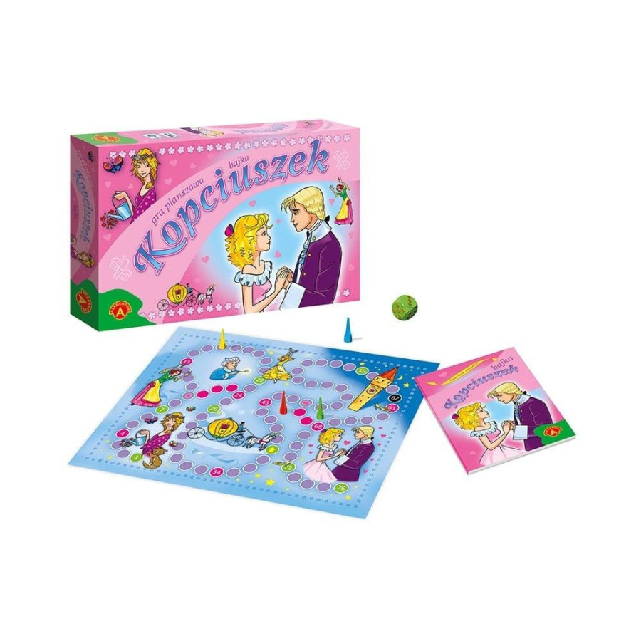 Wspaniała wyprawa do krainy baśni, gdzie razem z Kopciuszkiem przeżywamy jego przygody. W zależności od wskazań kostki otrzymujemy spowalniające nas zadania lub ułatwiające nam drogę niespodzianki. Wygrywa ten, kto jako pierwszy dotrze na metę i zdobędzie serce królewicza. Do gry dołączona została książeczka z bajką.