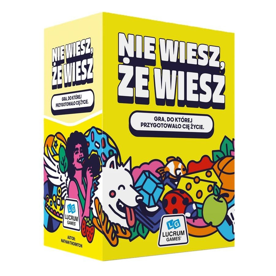 W Nie wiesz, że wiesz w każdej turze musisz wymienić coś, co pasuje do znajdujących się na stole kart kategorii (takich jak każdy dinozaur albo każda marka mydła. Jeżeli się zatniesz, możesz zmienić kategorię, o ile tylko posiadasz na ręce jakieś karty. Gdy ci ich zabraknie (albo z jakiegoś powodu uznasz to za lepsze rozwiązanie) możesz zabrać kartę feralnej kategorii jako karę. Współgraczy będziesz trzymać w ryzach dzięki kartom osądu, którymi możesz nagradzać wypowiedzi, nazwijmy to, kwestionowalne. Gra skończy się wraz z wyczerpaniem talii kart kategorii, a gracz najmniej pokarany za błędy zwycięży. Postaraj się wystąpić w tej roli!