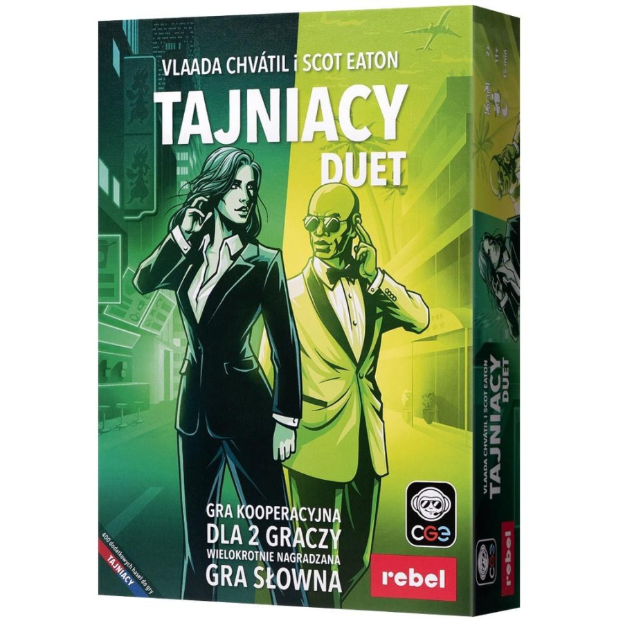Tajniacy Duet to specjalna odsłona wyjątkowej gry dedukcyjnej, umożliwiająca rozgrywki dwuosobowe (lub w dwóch współpracujących ze sobą grupach). Podczas zabawy każda ze stron ma dostęp do specjalnego klucza, dzięki któremu wie, na które hasła musi naprowadzić drugą osobę, a na które wręcz nie powinna jej kierować. Część z nich się pokrywa, inne są zupełnie różne. Aby wygrać, gracze muszą skontaktować się ze wszystkimi 15 agentami zanim wyczerpią się wszystkie znaczniki czasu.