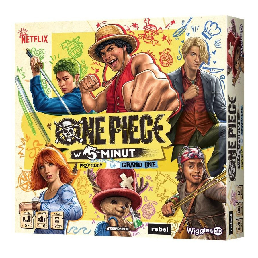 One Piece w 5 minut to dynamiczna gra karciana, w której współpracujemy, by ukończyć specjalną talię przygód zanim skończy się czas. Każda kolejna karta może kryć wyzwanie do pokonania aby tego dokonać, będziemy musieli sprytnie zagrywać karty, by zebrać zestawy odpowiednich symboli. Nie ma odwrotów! Czas ucieka, więc pracujcie jako zespół, aby dopasować karty i ukończyć wyzwania jako załoga.