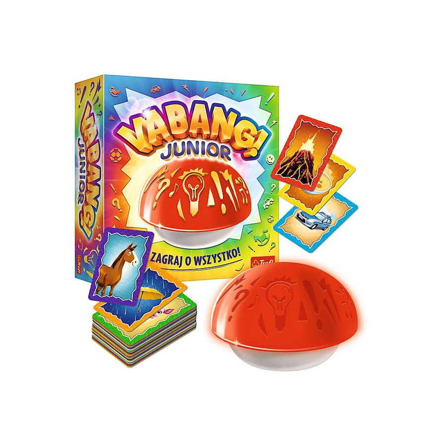 Gra Vabang Junior przeznaczona jest dla 2-8 graczy powyżej 6. roku życia, a przewidywany czas rozgrywki wynosi 20-30 minut. Opakowanie zawiera elektroniczny przycisk, 168 kart z obrazkami oraz instrukcję.