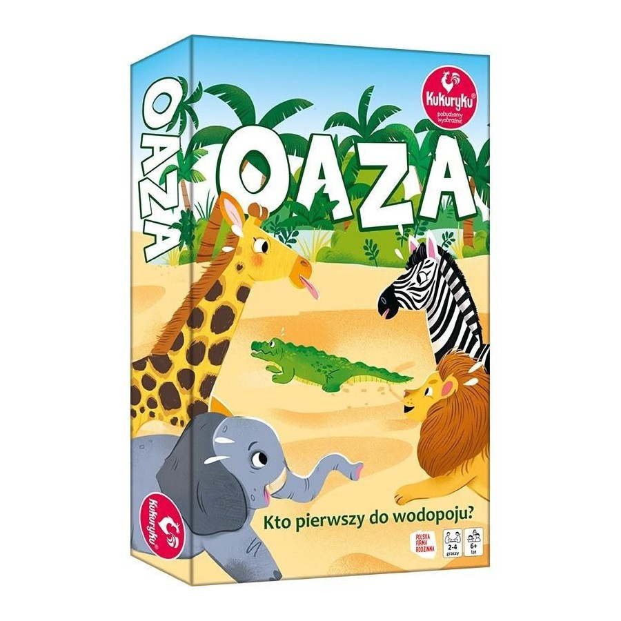 Wszystkie zwierzęta chcą dostać się do wodopoju. Które dotrze tam jako pierwsze? Podczas gry będziecie zmieniali kolejność zwierząt w wyścigu do OAZY oraz będziecie starali się wytypować te z nich, które dotrą tam najszybciej.