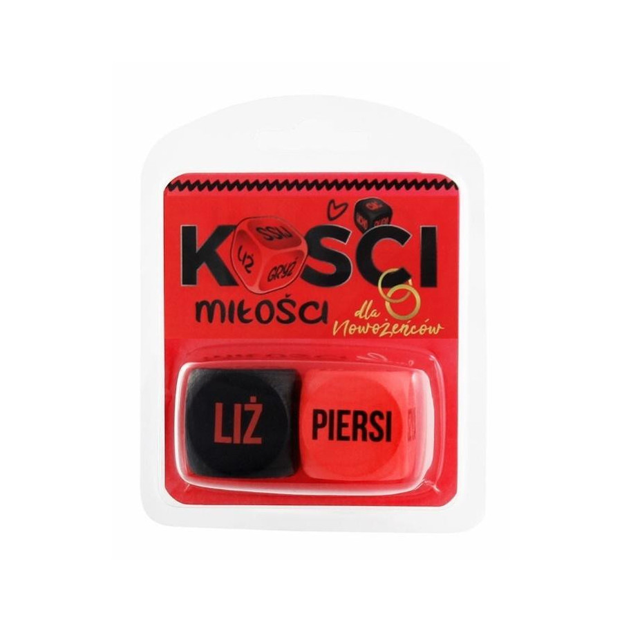 Erotyczna gra w kości dla par. Na jednej kostce znajdują się części ciała, a na drugiej zmysłowe czynności, które mamy wykonywać.