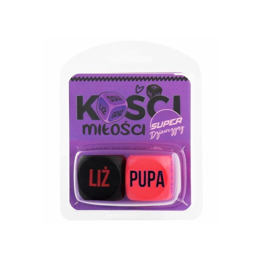 Na jednej kostce znajdują się części ciała, a na drugiej akcesoria erotyczne