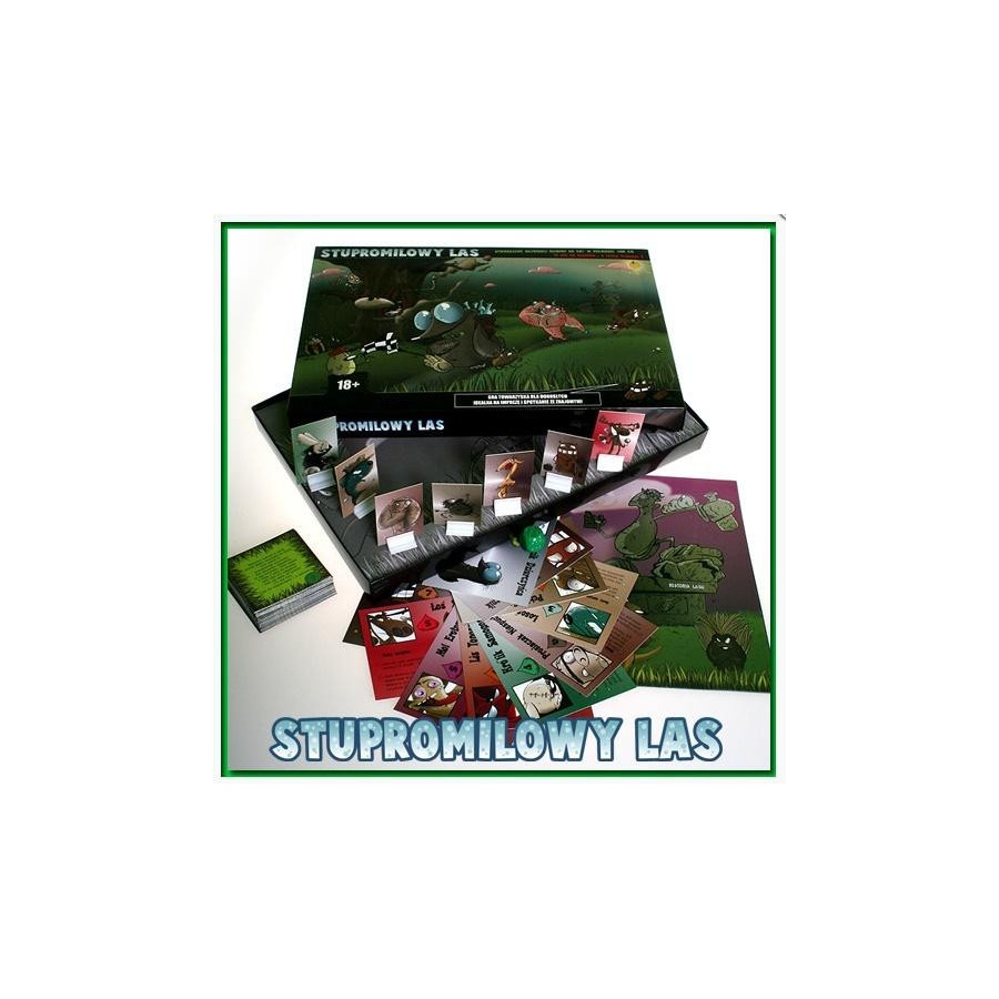 Czy potrafisz przypomnieć sobie najbardziej zwariowaną rzecz, jaką zdarzyło Ci się zrobić w Twoim życiu? Po przygodzie w Stupromilowym Lesie nie będziesz miał problemów z odpowiedzią! To gra, w której ilość humoru na centymetr kwadratowy gry jest podniesiona do absurdalnej potęgi. Dzięki niej przeniesiesz się do krainy, w której normalność to pojęcie względne! Podczas rozgrywki wszyscy gracze poznają najbardziej pokręcone cechy swoich osobowości! Gra Stupromilowy las jest wyścigiem z Mety do... drugiej Mety :) W wyścigu biorą udział najwytrwalsi mieszkańcy lasu, należący do grona osobników o ponadprzeciętnym poziomie Alkochłonności. Wśród tej elity znaleźli m.in. Królik Samogon, Mol Erotoman, czy Stonka Ludowa preferująca frytki. Testowanie poziomu owej, tajemniczo brzmiącej Alkochłonności jest jednym z zasadniczych elementów wyścigu słowem, jeszcze nikt nigdy nie ukończył wyścigu w stanie trzeźwości, czy nawet niewiele odbiegającym od trzeźwości :) Podczas wędrówki po Stupromilowym Lesie można natknąć się na wiele alkozdarzeń i alkosytuacji, które z każdym krokiem będą sukcesywnie pogłębiać stan Waszego umysłowego zbimbalenia. Ta gra jest najlepszym z możliwych sposobów na to, by Wasze umysły kręciły się w lewo, podczas gdy całe ciało w prawo będzie chciało. A wszystko po to, by odkryć przed Wami to, co nieodkryte (czyli odkryć to, co zakryte) - niezbadane obszary nieziemskiej zabawy i śmiechu pod wspólnym mianownikiem totalnie zakręconego absurdu!