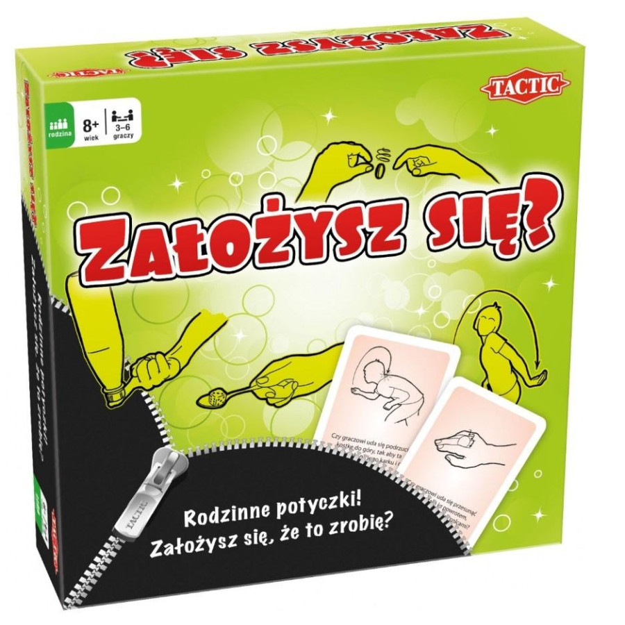 PRZEKONAJ SIĘ, KTO TO POTRAFI!W tej zabawnej grze rodzinnej wykonujesz różne zadania lub odpowiadasz na pytania. Inne osoby obstawiają twój sukces lub porażkę. Jeśli odgadną, wygrywają podwójną wartość obstawionych punktów. Twój sukces to także ekstra punkty dla ciebie!Założysz się? dzięki swojej interaktywności i zabawnym zadaniom wciąga tak dorosłych jak i dzieci. To gra zarówno na długie wieczory w rodzinnym gronie jak i na szaloną imprezę! Zawartość: 1 plansza, 288 kart zadań (144 zręcznościowych, 144 umysłowych), 12 kart TAK/NIETalia banknotów , 6 pionków, 1 notatnik, 1 kostka, 3 klepsydry. Gra przeznaczona dla 3 - 6 graczy w wieku 7+
